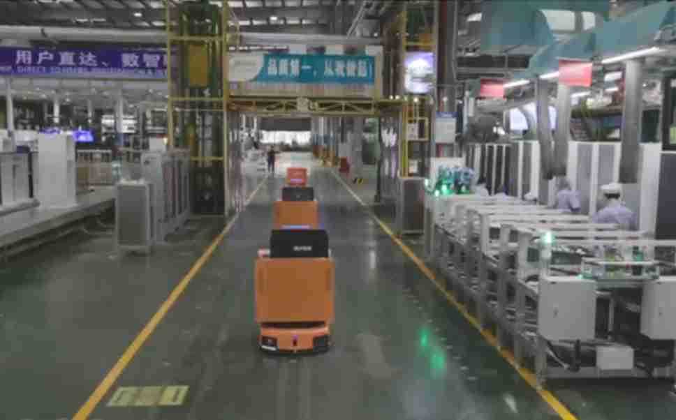为车载冰箱物流配送打造的智能解决方案,,包含产中物流通过潜伏举升AMR搬运至线边,,,产后成品物流智能仓储,,流程包含产中物流智能齐套入库,,线边安灯叫料AMR智能配送至线边,,,成品入库、、、、出库,,,通过无人堆高车机器人,,,智能仓储管理替代人工作业管理,,,实现更高存储、、、、更高效率、、更具柔性化的解决方案。。